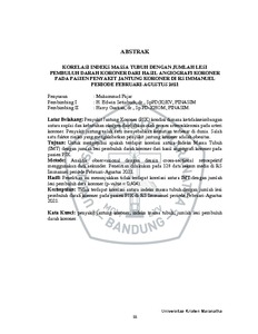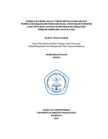 Fajar, Muhammad (2022) Korelasi Indeks Massa Tubuh Dengan Jumlah Lesi Pembuluh Darah Koroner Dari Hasil Angiografi Koroner Pada Penyakit Jantung Koroner Di Rs Immanuel Periode Februari–Agustus 2021. Undergraduate thesis, Universitas Kristen Maranatha.