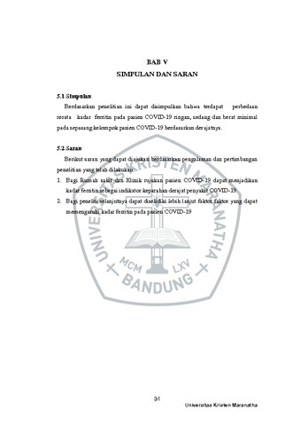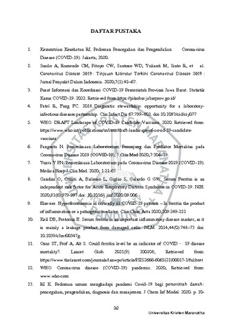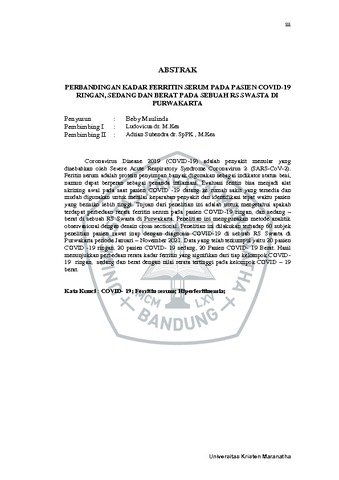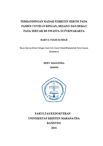 Maulinda, Beby (2022) "Perbandingan Kadar Ferritin Serum Pada Pasien Covid-19 Ringan, Sedang Dan Berat Pada Sebuah Rs Swasta Di Purwakarta". Undergraduate thesis, Universitas Kristen Maranatha.