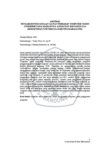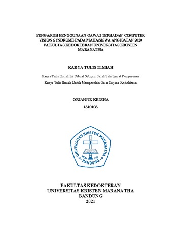 Keisha, Orianne (2022) Pengaruh Penggunaan Gawai Terhadap Computer Vision Syndrome Pada Mahasiswa Angkatan 2020 Fakultas Kedokteran Universitas Kristen Maranatha. Undergraduate thesis, Universitas Kristen Maranatha.