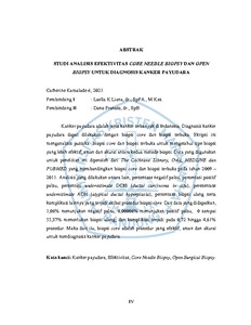 Studi Analisis Efektivitas Core Needle Biopsy Dan Open Biopsy Untuk Diagnosis Kanker Payudara