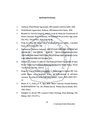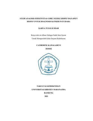 Kamaladevi , Catherine (2021) Studi Analisis Efektivitas Core Needle Biopsy Dan Open Biopsy Untuk Diagnosis Kanker Payudara. Undergraduate thesis, Universitas Kristen Maranatha.