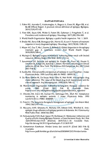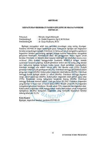 Islamyah, Miriam Angeli (2022) Kepatuhan Berobat Pasien Epilepsi Di Masa Pandemi Covid-19. Undergraduate thesis, Universitas Kristen Maranatha.