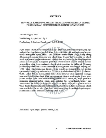 "Pengaruh Kafein Dalam Kopi Terhadap Nyeri Kepala Primer Pasien Rumah Sakit Immanuel Bandung Tahun 2021"