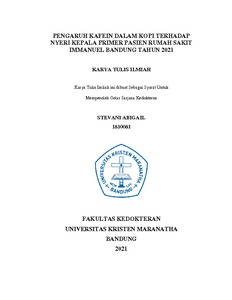 Nyeri kepala adalah suatu rasa nyeri atau rasa tidak enak pada daerah kepala yang juga meliputi daerah wajah dan tengkuk leher Kafein memiliki efek analgesik yang berguna untuk manajemen nyeri kepala akut. Sumber utama kafein yang paling sering dikonsumsi di semua kelompok usia adalah kopi. Tujuan dari penelitian ini adalah untuk mengetahui pengaruh konsumsi kafein dalam kopi terhadap nyeri kepala primer. Desain penelitian ini merupakan penelitian observasional analitik dengan metode pengambilan data cross sectional. Subjek dari penelitian ini sebanyak 30 orang perempuan pasien Rumah Sakit Immanuel Bandung tahun 2021 dengan rentang usia 18-65 tahun yang memenuhi kriteria. Hasil penelitian menggunakan uji korelasi spearman didapatkan p value sebesar 0,174 dan koefisien korelasi (nilai r) sebesar - 0,255. Dalam hal ini menunjukkan bahwa hasil statistik tidak signifikan sehingga konsumsi kafein dalam kopi tidak mempengaruhi derajat nyeri kepala primer pada pasien Rumah Sakit Immanuel Bandung tahun 2021. Selain itu, hasil penelitian mengenai pengaruh kafein dalam kopi terhadap tipe nyeri kepala primer juga memperoleh hasil statistik yang tidak signifikan, karena didapatkan p value sebesar 0,120 dan koefisien korelasi (nilai r) sebesar 0,290. Simpulan dari penelitian ini adalah konsumsi kafein dalam kopi tidak dapat mengurangi derajat nyeri kepala primer pada pasien Rumah Sakit Immanuel Bandung tahun 2021.