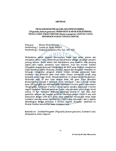 Baliandu, Beckty Miraz (2022) "Pengaruh Ekstrak Kelabat/Fenugreek (Trigonella Foenum-Graecum) Terhadap Kadar Kolesterol Total Pada Tikus Wistar (Rattus Norvegicus) Jantan Yang Diinduksi Pakan Tinggi Lemak". Undergraduate thesis, Universitas Kristen Maranatha.