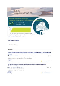Sandra, Lyvia Manuella and SeTin, SeTin (2023) The Roles of Workplace Culture In The Relationship Between Performance Appraisal Effectiveness and Employee Outcomes. Jurnal Manajemen Teknologi, 22 (1). pp. 111-123. ISSN 1412-1700