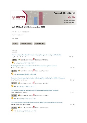 Mardiana, Mardiana and SeTin, SeTin (2023) Budgeting And Emotional Exhaustion In Covid-19 Pandemic: Survey From Indonesia. Jurnal Akuntansi, 27 (3). pp. 485-504. ISSN 2549-8800
