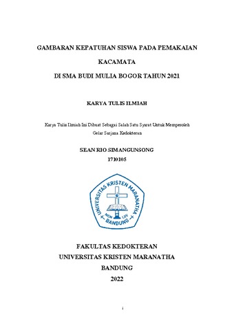 Simangunsong, Sean Rio (2022) Gambaran Kepatuhan Siswa Pada Pemakaian Kacamata di SMA Budi Mulia Bogor Tahun 2021. Undergraduate thesis, Universitas Kristen Maranatha.