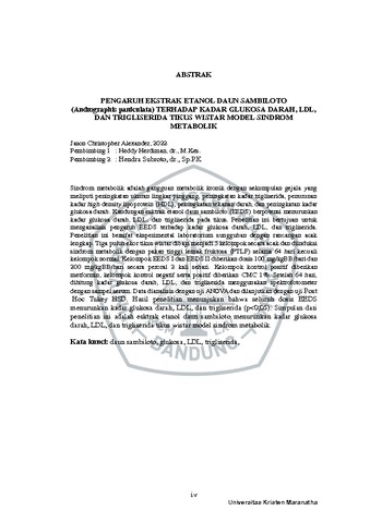 Alexander, Jason Christopher (2022) Efek Ekstrak Etanol Daun Sambiloto (Andrographis Paniculata) Terhadap Kadar Glukosa Darah, Ldl, Dan Trigliserida Tikus Wistar Model Sindrom Metabolik. Undergraduate thesis, Universitas Kristen Maranatha.