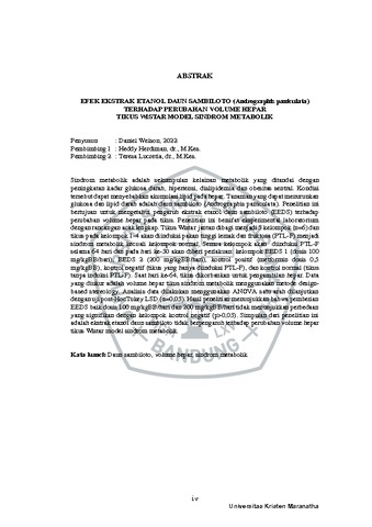 Efek Ekstrak Etanol Daun Sambiloto (Andrographis Paniculata) Terhadap Perubahan Volume Hepar Tikus Wistar Model Sindrom Metabolik
