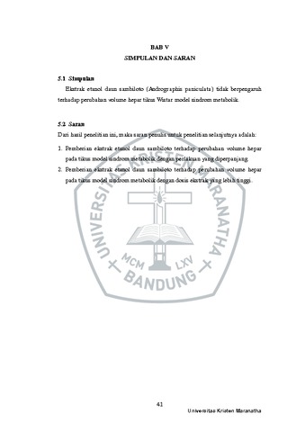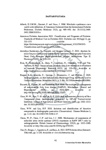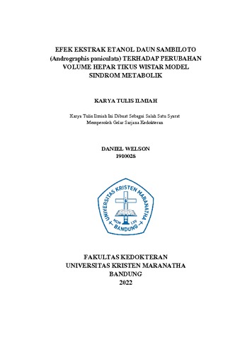 Welson , Daniel (2023) Efek Ekstrak Etanol Daun Sambiloto (Andrographis Paniculata) Terhadap Perubahan Volume Hepar Tikus Wistar Model Sindrom Metabolik. Undergraduate thesis, Universitas Kristen Maranatha.