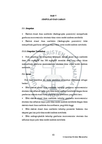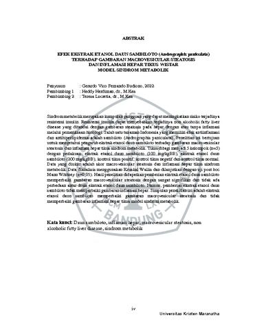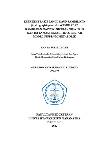 Budiono, Gerardo Vico Fernando (2022) Efek Ekstrak Etanol Daun Sambiloto (Andrographis Paniculata) Terhadap Gambaran Macrovesicular Steatosis Dan Inflamasi Hepar Tikus Wistar Model Sindrom Metabolik. Undergraduate thesis, Universitas Kristen Maranatha.