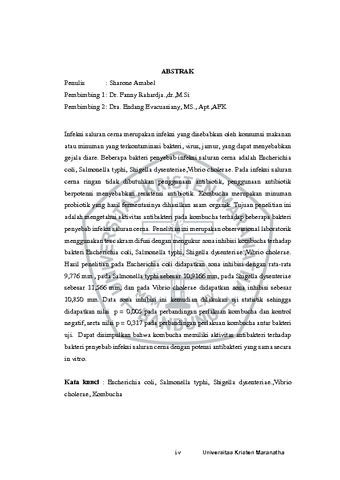 Amabel, Sharone (2022) Uji Aktivitas Antimikroba Dalam Kombucha Terhadap Beberapa Bakteri Penyebab Infeksi Saluran Cerna Secara In Vitro. Undergraduate thesis, Universitas Kristen Maranatha.
