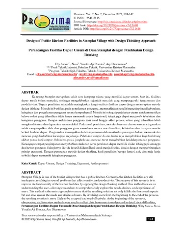 Sarvia, Elty and Novi, Novi and Pranata, Yosafat Aji and Dharmawan, Ary (2023) Perancangan Fasilitas Dapur Umum di Desa Stamplat dengan Pendekatan Design Thinking. Prozima, 7 (2). pp. 124-142. ISSN 2541-5115