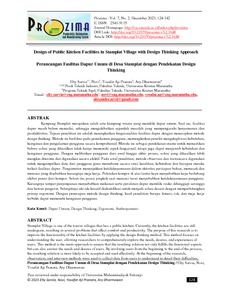 Kampung Stamplat merupakan salah satu kampung wisata yang memiliki dapur umum. Saat ini, fasilitas dapur masih belum memadai, sehingga mengakibatkan sejumlah masalah yang mempengaruhi kenyamanan dan produktivitas. Tujuan penelitian ini adalah meningkatkan fungsionalitas fasilitas dapur dengan menerapkan metode design thinking. Metode ini berfokus pada pemahaman pengguna, memungkinkan peneliti mengeksplorasi kebutuhan, keinginan dan pengalaman pengguna secara komprehensif. Metode ini sebagai pendekatan utama untuk memastikan bahwa solusi yang dihasilkan tidak hanya memenuhi aspek fungsional, tetapi juga dapat menjawab kebutuhan dan keinginan pengguna. Dengan melibatkan pengguna dari awal hingga akhir proses, solusi yang dihasilkan lebih mungkin diterima dan digunakan secara efektif. Pada awal penelitian, metode observasi dan wawancara digunakan untuk mengumpulkan data dari pengguna guna memahami secara rinci kesulitan, kebutuhan dan harapan mereka terkait fasilitas dapur. Pengamatan menunjukkan ketidaknyamanan dalam aktivitas persiapan bahan, memasak dan mencuci yang disebabkan kurangnya meja kerja. Peletakan kompor di atas lantai kayu menyebabkan kayu berlubang akibat panas dari kompor. Selain itu, posisi jongkok saat mencuci turut menyebabkan ketidaknyamanan pengguna. Kurangnya tempat penyimpanan menyebabkan makanan serta peralatan dapur memiliki risiko dihinggapi serangga dan hewan pengerat. Selanjutnya ide-ide kreatif diidentifikasi untuk menjadi solusi desain dengan memperhitungkan prinsip ergonomi. Dengan penerapan metode design thinking, hasil penelitian berupa lemari, rak, dan meja kerja terbukti dapat memenuhi keinginan pengguna.