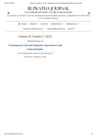 Sutandio, Anton (2022) Skinned Performance: Female Body Horror in Joko Anwar’s Impetigore. Rupkatha Journal, 14 (1). pp. 1-12. ISSN 0975-2935
