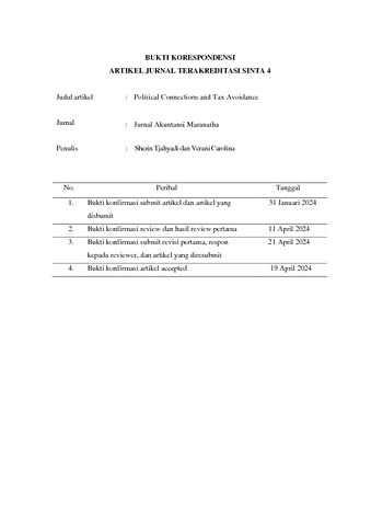 Tjahyadi, Sherin and Carolina, Verani (2024) Political Connections and Tax Avoidance. Jurnal Akuntansi Maranatha, 16 (1). pp. 158-167. ISSN 2598-4977