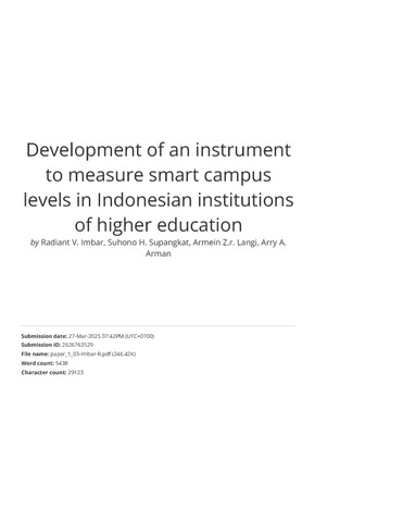Imbar, Radiant Victor and Supangkat, Suhono Harso and Langi, Armein Z.R. and Arman, Arry A. (2022) Development of an instrument to measure smart campus levels in Indonesian institutions of higher education. Global Journal of Engineering Education, 24 (2). pp. 95-104. ISSN 1328-3154