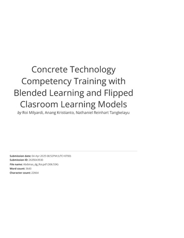Milyardi, Roi and Kristianto, Anang and Tangkelayu, Nathaniel Reinhart (2023) Concrete Technology Competency Training with Blended Learning and Flipped Clasroom Learning Models. DINAMISIA: Jurnal Pengabdian Kepada Masyarakat, 7 (6). pp. 1678-1686. ISSN 2614-8927