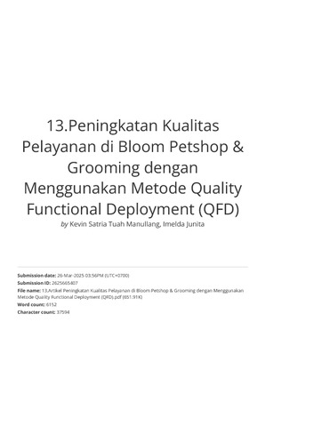 Manullang, Kevin Satria Tuah and Junita, Imelda (2024) Peningkatan Kualitas Pelayanan di Bloom Petshop & Grooming Menggunakan Metode Quality Functional Deployment (QFD). Jurnal Riset Bisnis, 7 (2). pp. 244-261. ISSN 2598-005X