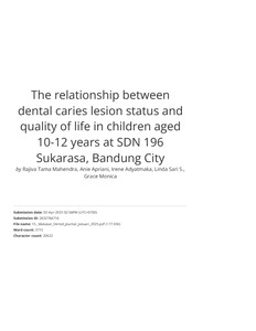 The relationship between dental caries lesion status and quality of life in children aged 10-12 years at SDN 196 Sukarasa, Bandung City