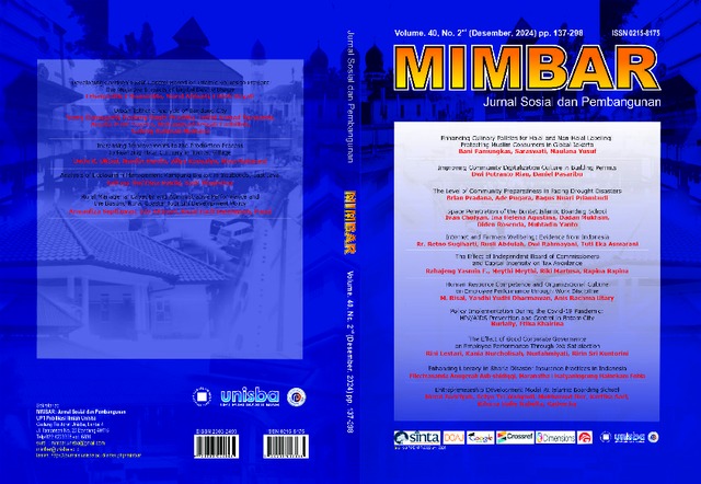 Yasmin F., Rahajeng and Meythi, Meythi and Martusa, Riki and Rapina, Rapina (2024) The Effect of Independent Board of Commissioners and Capital Intensity on Tax Avoidance. Mimbar: Jurnal Sosial dan Pembangunan, 40 (2). pp. 187-194. ISSN 0215-8175