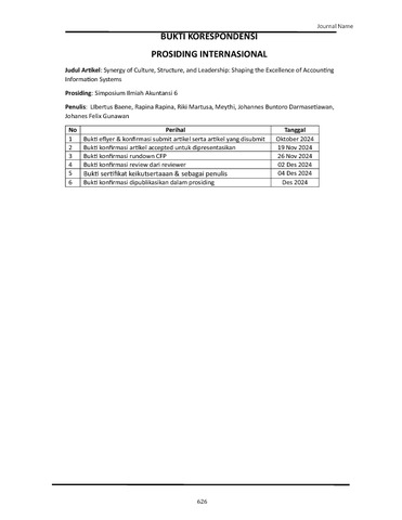 Baene, Libertus and Rapina, Rapina and Martusa, Riki and Meythi, Meythi (2024) Synergy of Culture, Structure, and Leadership: Shaping the Excellence of Accounting Information Systems. In: Simposium Ilmiah Akuntansi 6, 28 November 2024.