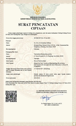 Sertifikat HKI dan Artikel (Benefactive Verb yarimorai) Verba Benefaktif Yarimorai sebagai Ilokusi Performatif.pdf Download (1273Kb) | Preview |