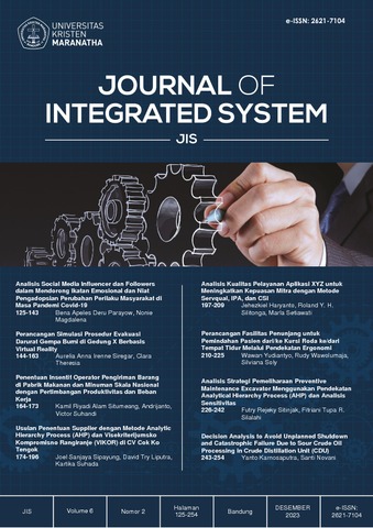 Situmeang, Kamil Riyadi Alam and Andrijanto, Andrijanto and Suhandi, Victor (2023) Penentuan Insentif Operator Pengiriman Barang di Pabrik Makanan dan Minuman Skala Nasional dengan Pertimbangan Produktivitas dan Beban Kerja. Journal of Integrated System, 6 (2). pp. 164-173. ISSN 2621-7104