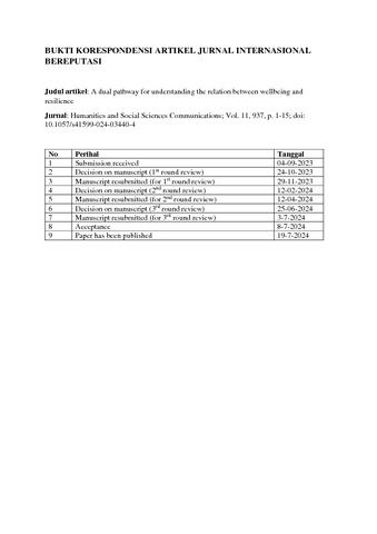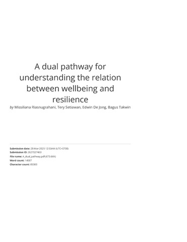 Riasnugrahani, Missiliana and Setiawan, Tery and de Jong, Edwin and Takwin, Bagus (2024) A dual pathway for understanding the relation between wellbeing and resilience. Humanities & Social Sciences Communications, 11 (937). pp. 1-15. ISSN 2662-9992