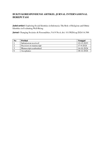 Bukti korespondensi Artikel Jurnal Internasional Bereputasi-Changing Societies & Personalities.pdf Download (1818Kb) | Preview |