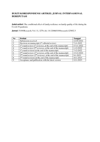 Setiawan, Tery and Wardani, Ria and Theresia, Ellen (2024) The conditional effect of family resilience on family quality of life during the Covid-19 pandemic. F1000Research, 11 (1279). pp. 1-29. ISSN 2046-1402