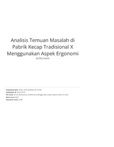 Halim, Winda and Yudiantyo, Wawan and Sarvia, Elty and Novi, Novi and Tjahyadi, Kevin (2022) Temuan Masalah di Pabrik Kecap Tradisional X Menggunakan Aspek Ergonomi. In: Seminar nasional hasil pengabdian masyarakat 2022, 21-22 September 2022, Bandung.