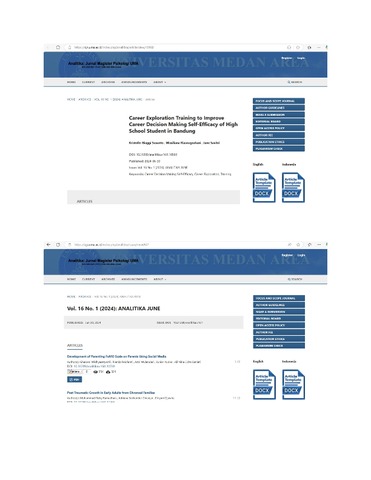 Susanto, Kristopher Biaggi and Riasnugrahani, Missiliana and Savitri, Jane (2024) Pelatihan Career Exploration untuk Meningkatkan Career Decision Making Self-Efficacy pada Siswa SMA di Bandung. Analitika: Jurnal Magister Psikologi UMA, 16 (1). pp. 41-48. ISSN 2502-4590