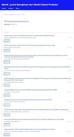 Rizal, Ahmad Jauhari and Sarvia, Elty (2023) Desain Ulang Stasiun Kerja di Pabrik Tahu PD.XYZ dengan Memperhatikan Postur Kerja. MATRIK: Jurnal Manajemen dan Teknik Industri-Produksi, 24 (1). pp. 15-26. ISSN 2621-8933