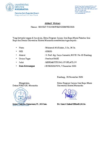 Universitas Kristen Maranatha, Muhammad Ali Rahim (2020) REPEARTITION-LOTOFLATLOV. 000224205.