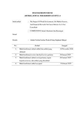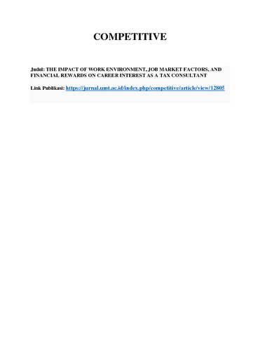 Wadu, Adinda Violetta Caroline and Hidayat, Vinny Stephanie (2025) Work Environment, Job Market, and Financial Rewards on Tax Consultant's Career Interest. Competitive Jurnal Akuntansi dan Keuangan, 9 (1). pp. 13-23. ISSN 2549-791X