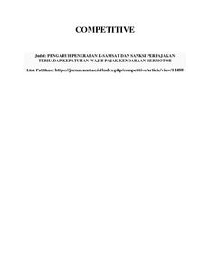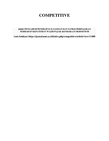 Kurniawan, Miko Katon and Hidayat, Vinny Stephanie (2024) Kepatuhan Wajib Pajak Kendaraan Bermotor: Analisis Pengaruh Penerapan E-Samsat dan Sanksi Perpajakan. Competitive Jurnal Akuntansi dan Keuangan, 8 (2). pp. 40-51. ISSN 2549-791X