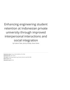 Enhancing engineering student retention at Indonesian private university through improved interpersonal interactions and social integration