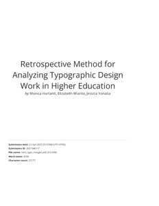 Hartanti, Monica and Wianto, Elizabeth and Yonatia, Jessica (2022) Retrospective Method for Analyzing Typographic Design Work in Higher Education. In: 1st Pedagogika International Conference on Educational Innovation, 15 September 2022, Gorontalo.