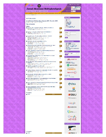 Erwan, Erwan and Martusa, Riki and Meythi, Meythi (2023) Apakah Profitabilitas, Leverage, dan Ukuran Perusahaan Menurunkan Kesulitan Keuangan Perusahaan? Jurnal Akuntansi Multiparadigma, 14 (2). pp. 412-421.