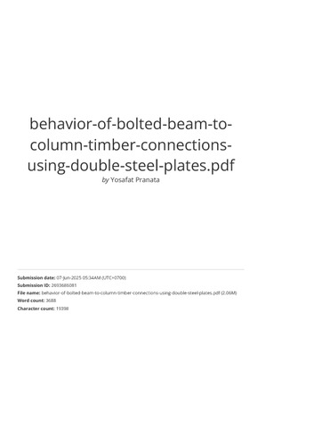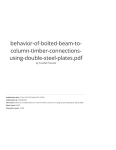 Pranata, Yosafat Aji and Suryoatmono, Bambang (2025) Behavior of Bolted Beam-to-Column Timber Connections Using Double Steel Plates. Wood Research Journal, 70 (2). pp. 337-346. ISSN 2087-3840