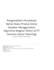 Thomas, Auryn and Suhada, Kartika (2020) Pengendalian Persediaan Bahan Baku Produk Active Speaker Menggunakan Algoritma Wagner Within di PT Hartono Istana Teknologi. Journal of Integrated System, 3 (1). pp. 59-71. ISSN 2621-7104