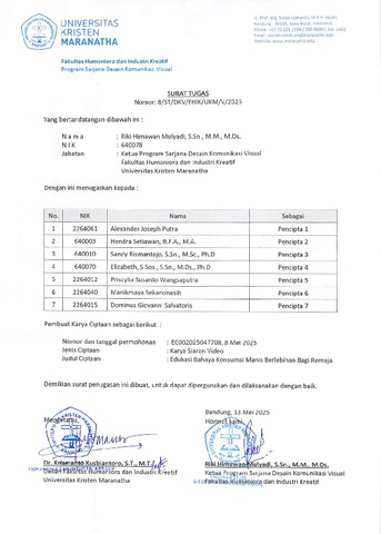 Universitas Kristen Maranatha, Alexander Joseph Putra, Hendra Setiawan, Sandy Rismantojo, Elizabeth, Priscylia Susanto Wangsaputra, Manikmaya Sekarkinasih, Dominus Giovanni Salvatoris