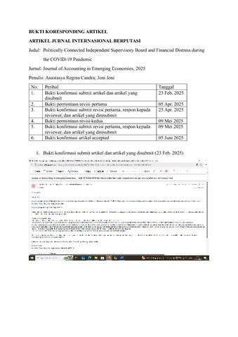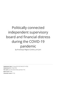 Candra, Anastasya Regina and Joni, Joni (2025) Politically connected independent supervisory board and financial distress during the COVID-19 pandemic. Journal of Accounting in Emerging Econmies. ISSN 2042-1176