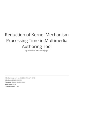 1. Turnitin - Reduction of Kernel Mechanism Processing Time in Multimedia Authoring Tool.pdf Download (2980Kb) | Preview |