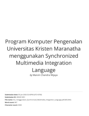 2. Turnitin - Program Komputer Pengenalan Universitas Kristen Maranatha menggunakan Synchronized Multimedia Integration Language.pdf