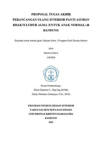 Maria, Novenia (1663010) (2021) Perancangan Ulang Interior Panti Asuhan Bhakti Luhur Alma (Untuk Anak Normal) di Bandung. Undergraduate thesis, Universitas Kristen Maranatha.