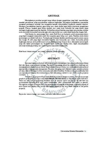 Meningkatnya produksi sampah tanpa diikuti dengan pengelolaan yang baik, menimbulkan masalah pencemaran yang menyebabkan rusaknya lingkungan. Kurangnya pengetahuan masyarakat mengenai pentingnya memilah dan mengelola sampah menyebabkan terjadinya masalah tersebut. Merespon permasalahan tersebut, gaya hidup zero waste dinilai tepat dalam membantu pengelolaan sampah. Namun, berganti gaya hidup menjadi zero waste tentu bukanlah hal yang mudah tanpa dukungan lingkungan sosial dan fasilitas. Dibutuhkan sebuah fasilitas yang dapat menyuarakan edukasi serta mewadahi komunitas-komunitas agar informasi terkait zero waste dapat disalurkan dengan baik. Oleh karena itu, perancangan Zero waste Bulk Store ini bertujuan untuk merancang interior yang dapat mengajak masyarakat untuk ikut menjalani gaya hidup zero waste. Fasilitas utama dalam perancangan ini adalah bulk store. Terdapat juga beberapa fasilitas pendukung seperti seminar space dan lounge & café yang dapat mewadahi kegiatan dari komunitas zero waste, komunitas peduli lingkungan lainnya, serta publik secara umum. Melalui konsep Swap to Zero, diharapkan semua aspek yang ada dalam perancangan ini, terutama aspek layout dan display toko, dapat menyampaikan informasi terkait gaya hidup zero waste kepada masyarakat dengan baik.