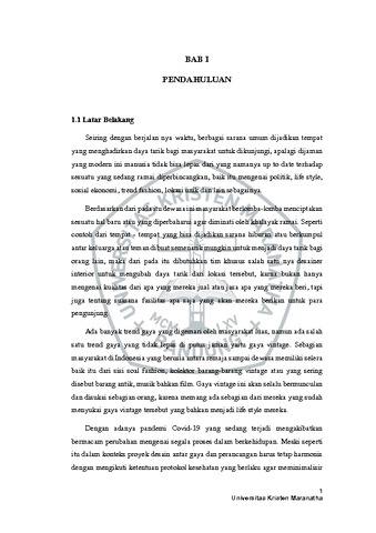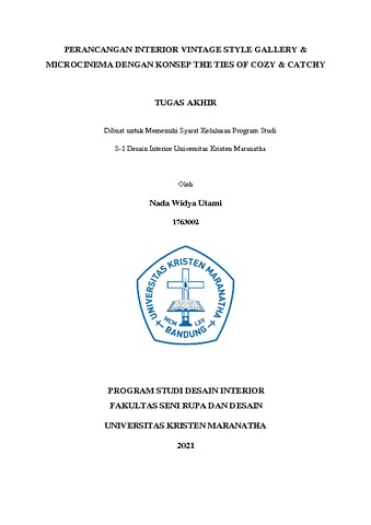 Utami, Nada Widya (1763002) (2021) Perancangan Interior Vintage Style Gallery & Microcinema dengan Konsep The Ties of Cozy & Catchy. Undergraduate thesis, Universitas Kristen Maranatha.